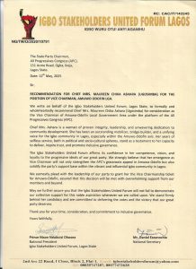 Let’s be clear: the Amuwo Odofin Chapter of the Igbo Stakeholders Forum remains the true voice of Ndigbo in this area, and our support for Maureen Ashara remains strong.