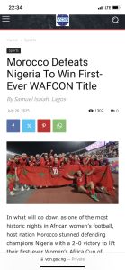 The management of the Voice of Nigeria (VON) has apologised for erroneously publishing a story claiming Morocco Women’s national team defeated the Super Falcons of Nigeria in the final of the 2025 WAFCON.