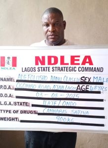 The arrest came after he had evaded arrest twice and fled to Ghana to hide since June, when operatives started trailing him following the seizure of two shipments of Ghana Loud, a strain of cannabis linked to him. The first seizure of 200kg of the psychoactive substance was made at Okun Ajah beach on 4th June 2025, while another consignment of 700kg of the same substance was recovered from his delivery van on 6th July 2025.