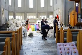 The intimate wedding unfolded at Hallgrímskirkja Church in Reykjavík, festooned with flowers and kept away from the public eye.