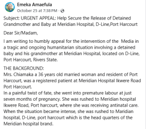 The hospital reportedly billed the family about ₦6 million, of which only ₦1.4 million was paid.